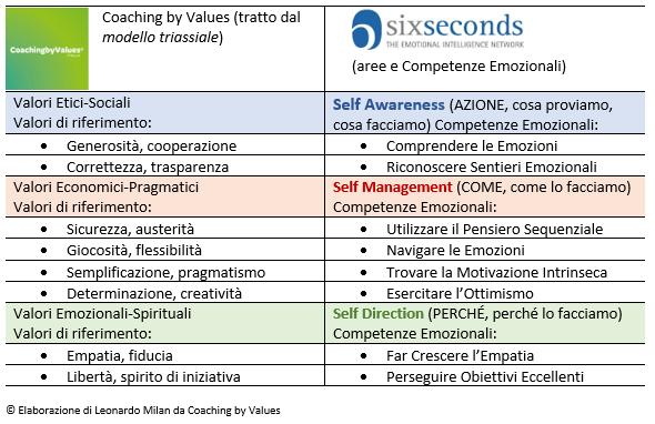 Fonti: Coaching by Values Italia www.coachingbyvalues.it, Six Seconds