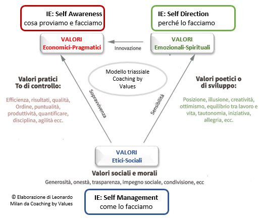 Da questa domanda sono partito con un confronto tra il modello Coaching by Value modello triassiale (anche questo creato da Simon Dolan) e Intelligenza Emotiva (modello Six Seconds). Il risultato è così riassunto: