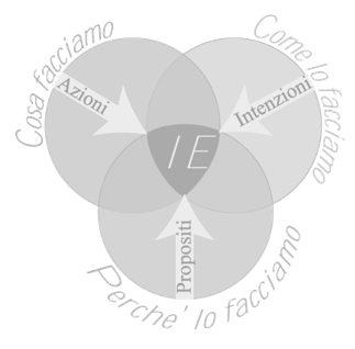 Riporto qui di seguito l’elenco delle tre aree e delle competenze emotive, con una grafica (a destra) che descrive le tre aree anche come: azioni, intenzioni e propositi.